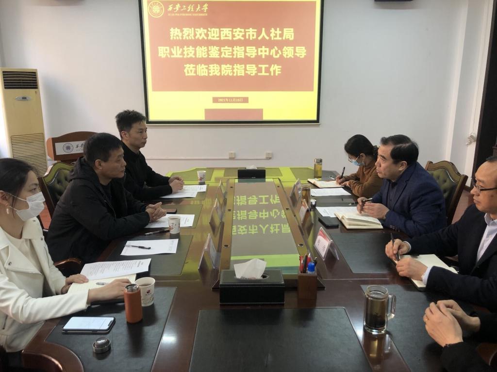 11月18日上午,西安市人力资源与社会保障局职业技能鉴定指导中心罗曼主任一行三人来到必赢官网金花校区,对必赢官网开展职业技能等级认定评价工作的开展情况,进行了调研,565net必赢客户端负责人、纺织行业职业技能鉴定所负责人等同志参加调研会。