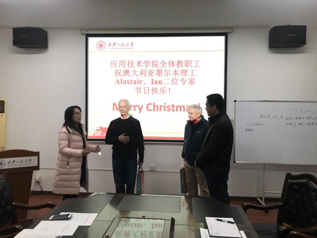 12月25日上午,565net必赢客户端副院长刘玉森和学院教务科、教研室相关老师一起走访慰问了正在必赢官网承担中澳合作办学项目专业课教学的澳大利亚墨尔本理工学院Alastair、Ian两位外籍教师,代表学院向他们送上节日的祝福。