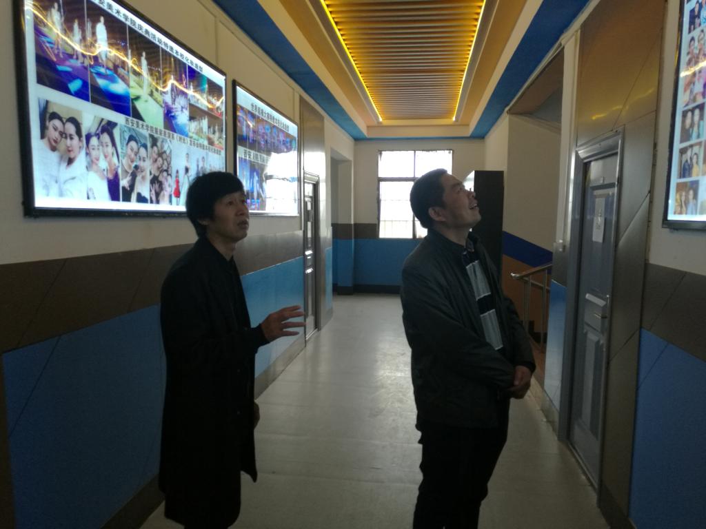 西安康博尔学校是西北地区首家艺术与技能相结合的技工学校。2012年该校投资1.3亿元打造艺术校区,采用园林景观设计,校园占地面积近200亩。在栗校长的陪同下,刘玉森一行首先考察了学校的校园、教室、餐厅、培训室、学生公寓、运动场、多功能厅等办学相关设施。