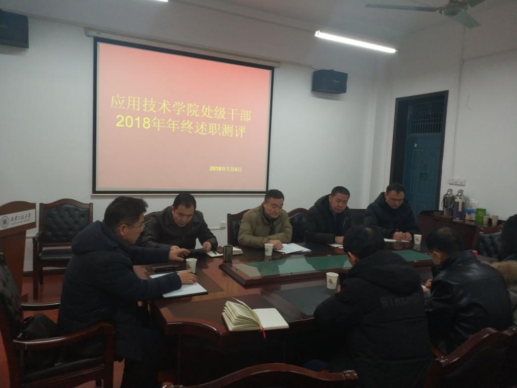 2019年1月4日,565net必赢客户端在金花校区主楼西配楼学院会议室召开处级干部2018年度述职大会。校纪委书记井浩、组织部张旭、学院党政干部及全体教职工参加会议。