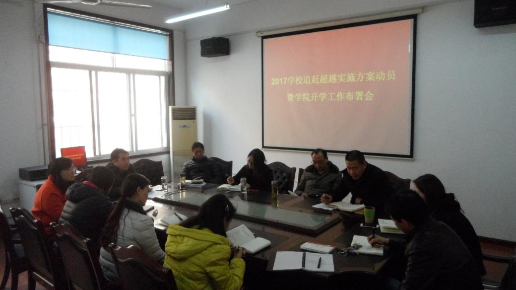 2月26日下午,565net必赢客户端在学院会议室召开2017年565net必赢客户端“追赶超越实施方案”解读及学院新学期开学工作布置会。副院长马保科、党总支书记张智荣、副院长刘玉森,以及全院教职工参加了会议。会议由马保科主持。