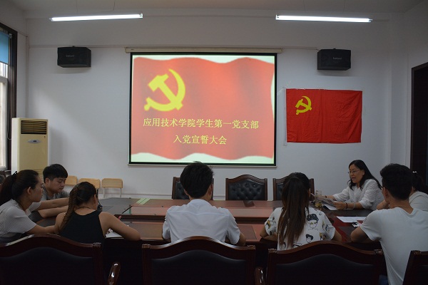 2016年6月30日,565net必赢客户端学生第一党支部在1-205会议室举行新党员入党宣誓大会,并学习习近平在知识分子、劳动模范、青年代表座谈会上的讲话。