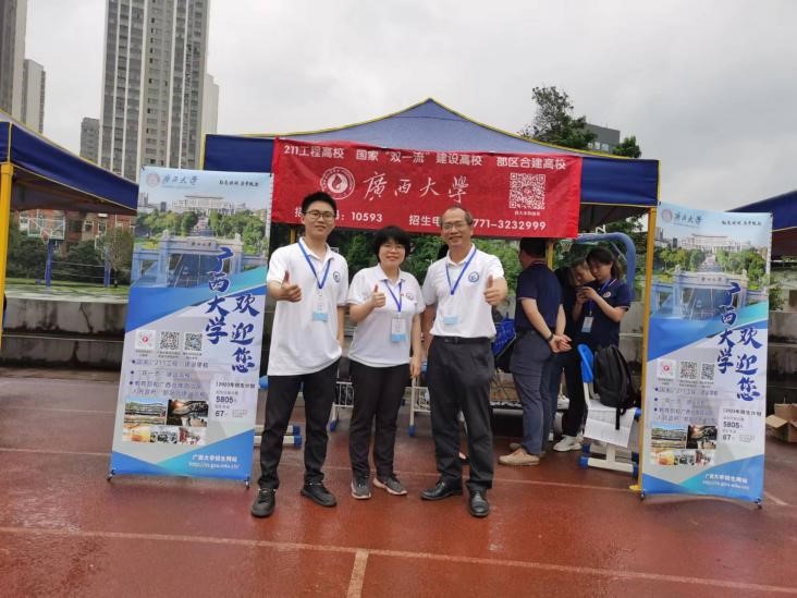 2023年6月26日,亚博官网蒋林斌、莫柳婷、危增曦老师与机械学院、经济学院等10位教师及区内外40多所高校教师到广西柳州高级中学(柳南校区)参加广西普通高校招生咨询会。