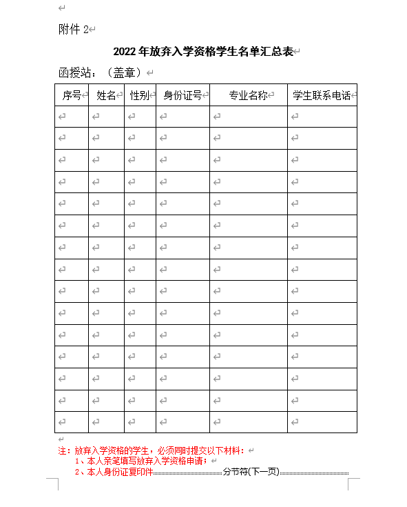 附件2: 2022年放弃入学资格学生名单汇总表